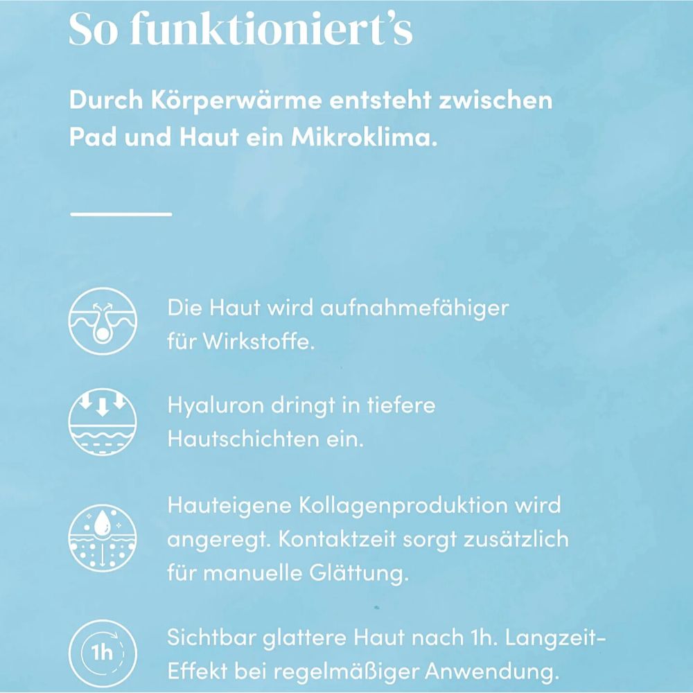 Anwendung: Reinigen Sie Ihre Stirn gründlich und tragen Sie das Pad auf die trockene Haut auf. Lassen Sie es mindestens eine Stunde oder über Nacht einwirken. Nach der Anwendung mit Wasser reinigen und für die nächste Anwendung aufbewahren.