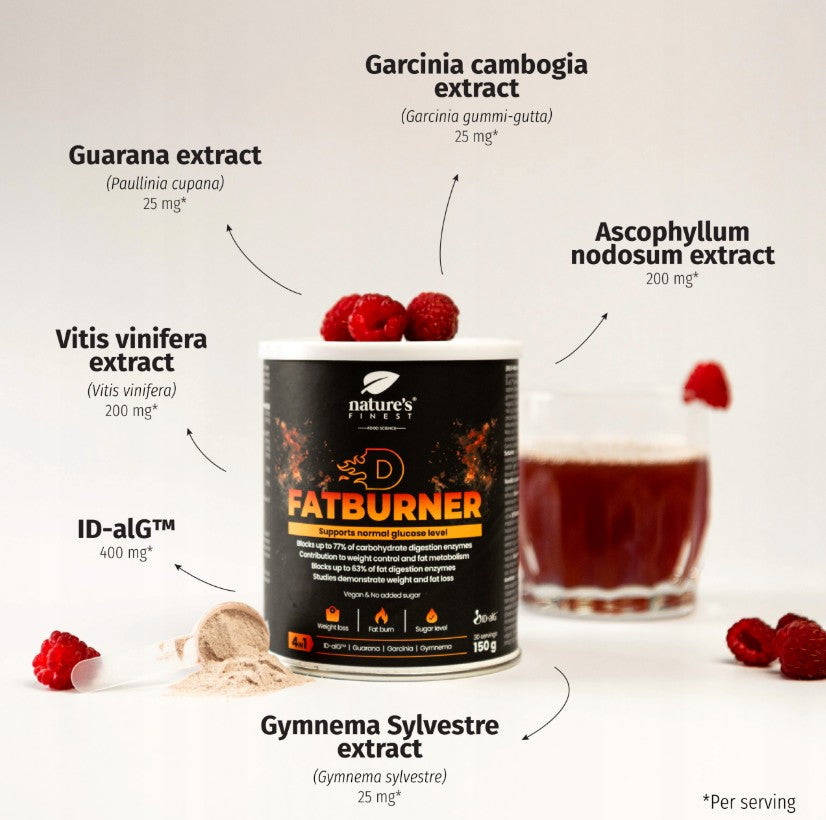 Entdecken Sie den D-FatBurner von Nature's Finest – eine revolutionäre 4-in-1-Formel, die Ihnen hilft, Ihr Gewicht effektiv zu kontrollieren und gleichzeitig einen normalen Blutzuckerspiegel zu unterstützen. Diese einzigartige Mischung kombiniert patentierte Inhaltsstoffe wie ID-alG™ mit natürlichen Extrakten aus Guarana, Garcinia Cambogia und Gymnema Sylvestre, um Ihren Stoffwechsel zu fördern und die Fettverbrennung zu maximieren.