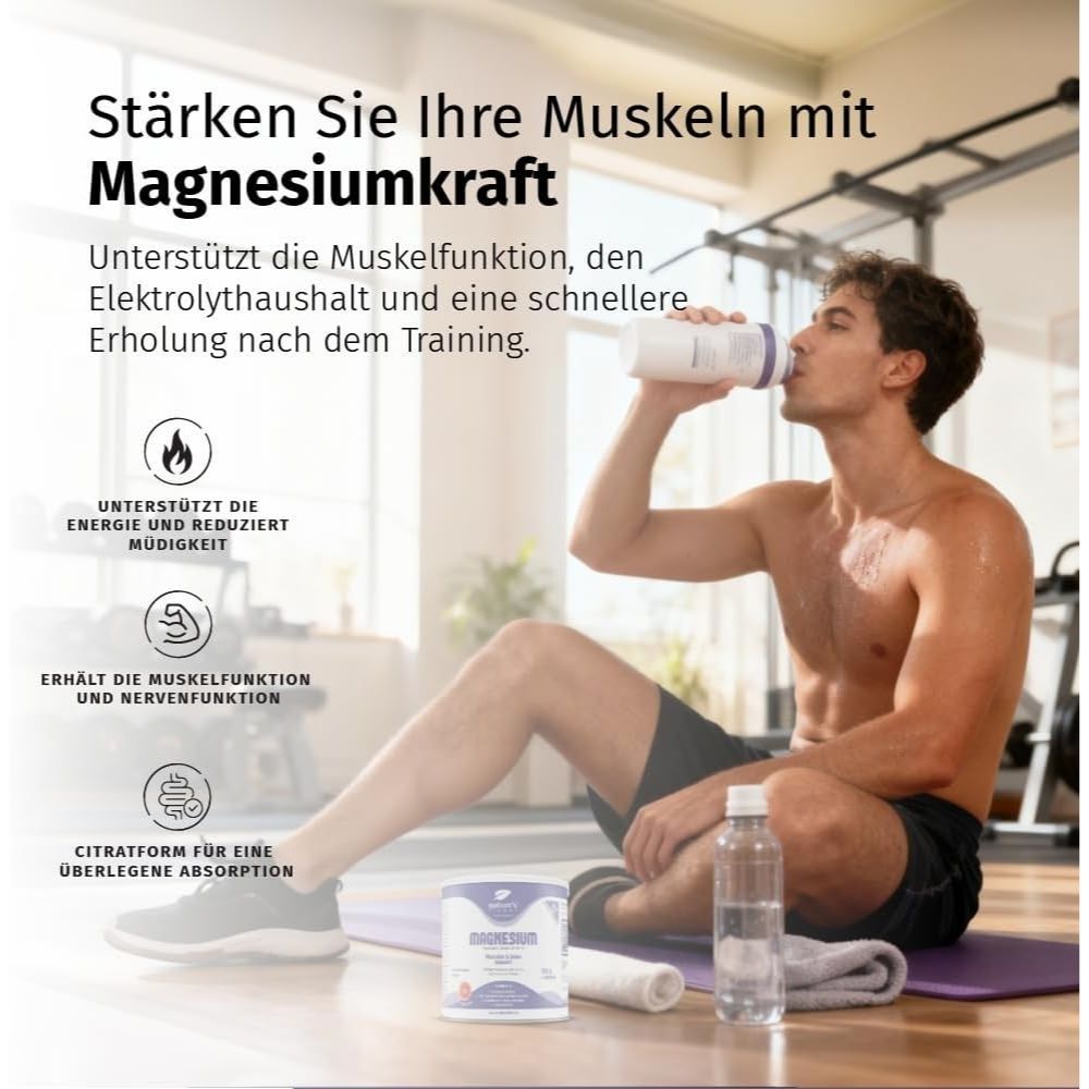 Entdecken Sie das Magnesium von Nature's Finest – ein hochwertiges Nahrungsergänzungsmittel, das Ihren täglichen Magnesiumbedarf optimal deckt. Mit 375 mg Magnesium pro Portion in Form von Magnesiumcitrat gewährleistet es eine hervorragende Bioverfügbarkeit und unterstützt zahlreiche Körperfunktionen.