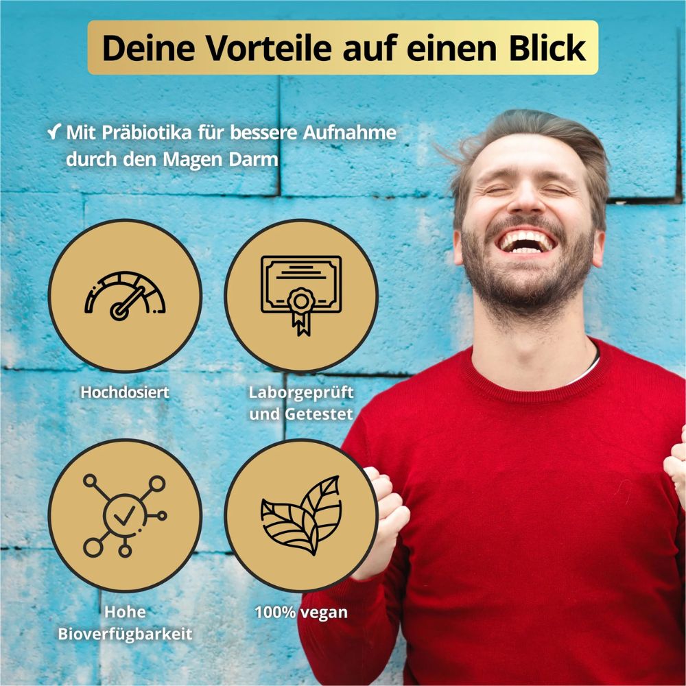 Wir setzen auf organisch gebundenes Zink Bisglycinat – eine besonders gut verträgliche und bioverfügbare Zinkform. Sie wird vom Körper deutlich besser aufgenommen als herkömmliche Zinkverbindungen wie Zinkgluconat.