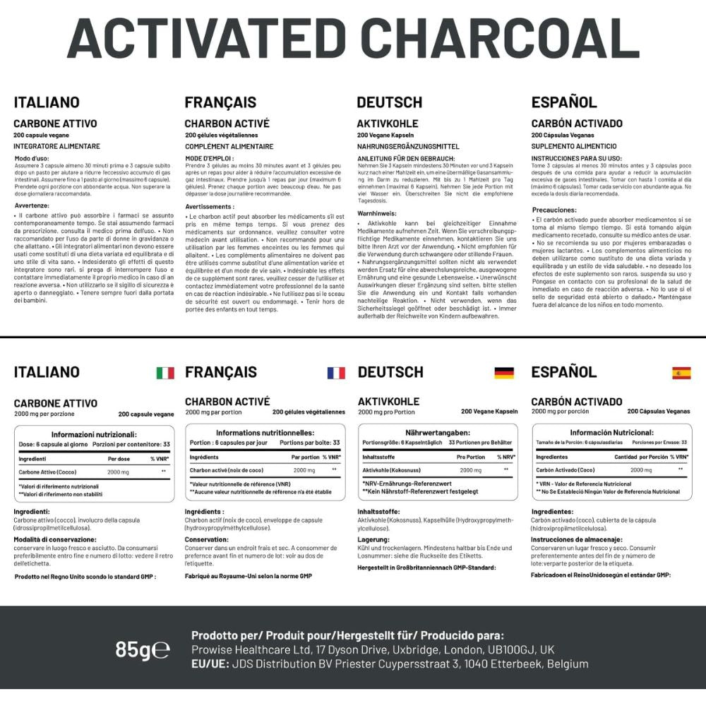 Die Aktivkohle-Kapseln von Prowise Healthcare enthalten hochreine Aktivkohle aus natürlichen Kokosschalen und sind für die tägliche Einnahme konzipiert. Jede Portion liefert 2000 mg Aktivkohle in veganen Kapseln.