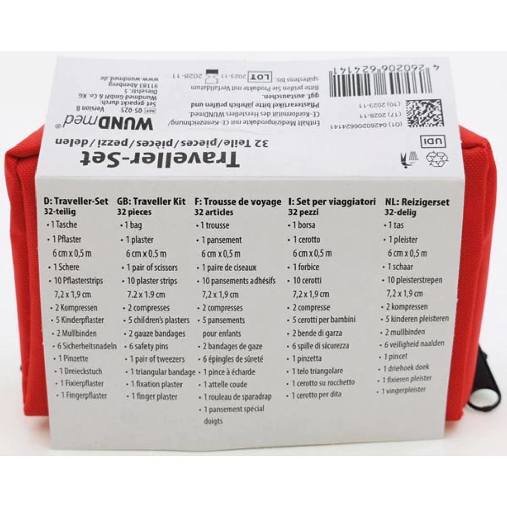 Das WUNDmed Traveller-Set Erste Hilfe 32 Teile ist ein kompaktes und vielseitiges Set zur schnellen Erstversorgung kleiner Verletzungen unterwegs. Ideal für Reisen, Ausflüge, Wandertouren oder den täglichen Gebrauch. Alle Bestandteile entsprechen medizinischen Standards und ermöglichen eine sichere, hygienische und zuverlässige Anwendung. Dank seiner handlichen Größe (12 × 7 × 5 cm), robustem Reißverschluss und einer praktischen Gürtelschlaufe lässt sich das Set leicht transportieren und ist jederzeit griffbereit.
